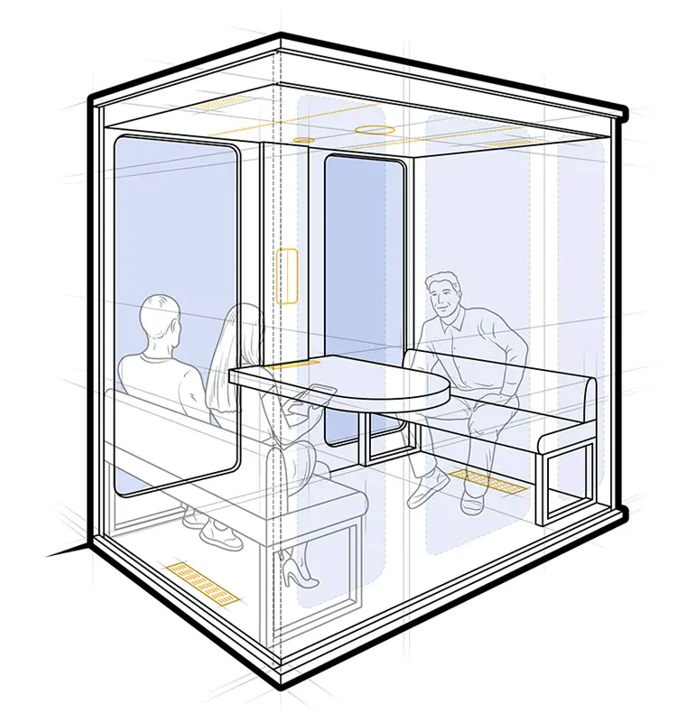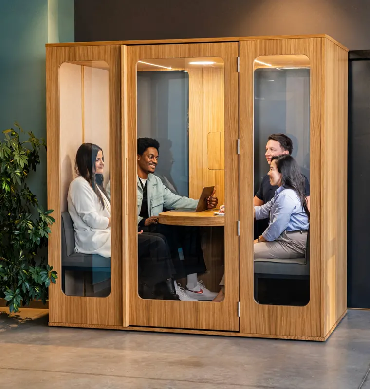 Haven Four predstavlja novu generaciju kancelarijske kabine za sastanke do četiri osobe, idealne za timski rad, privatne razgovore i kolaborativne video konferencije. Sa vrhunskom zvučnom izolacijom, naprednim sistemom ventilacije i udobnim enterijerom, ova kabina stvara savršeno okruženje za produktivne sastanke u modernim poslovnim prostorima.